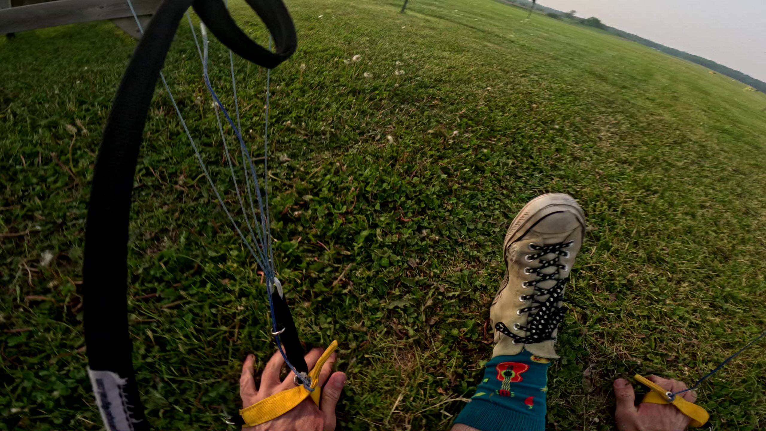 On the day in question, I did four jumps on my new wingsuit using my wingsuit rig. Then, in preparation for an upcoming trip to Europe, I wanted to test the fit of my HK2 60 in that rig with the idea of only bringing one rig but multiple canopies. I had about a 50-minute call to switch canopies. I even told myself that if I felt rushed, I would get off the load for the next one.