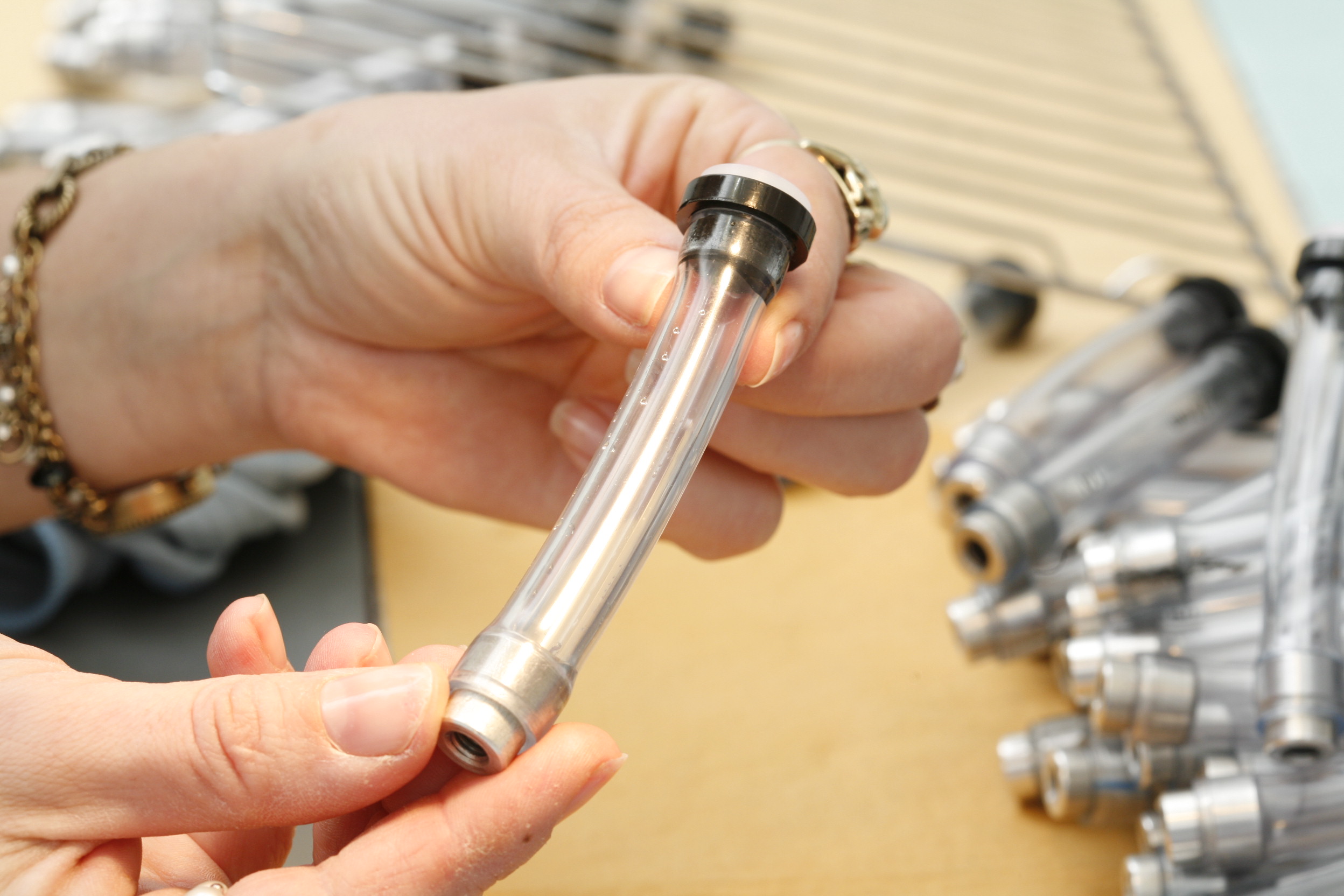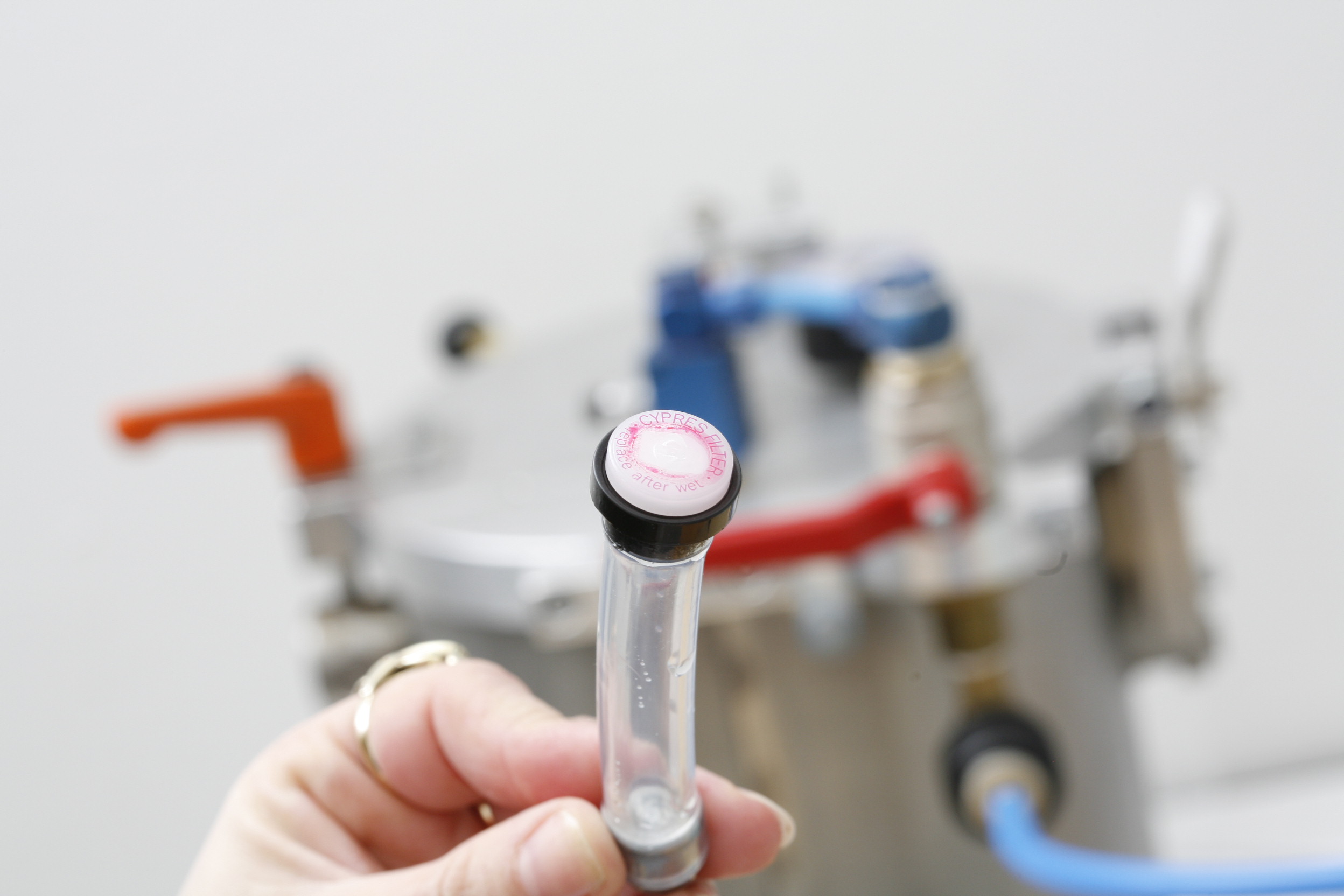 Once the filters are fitted to a tube, they are tested.